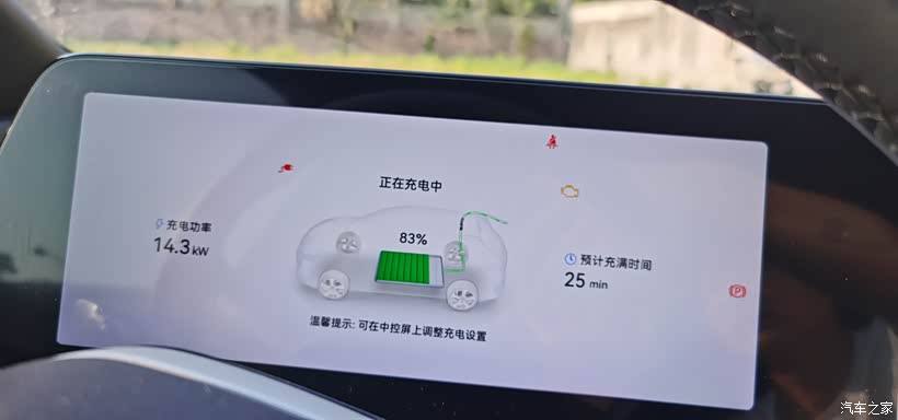 电量在83%之后是14.4个千瓦,也就是4分钟可以充一度电