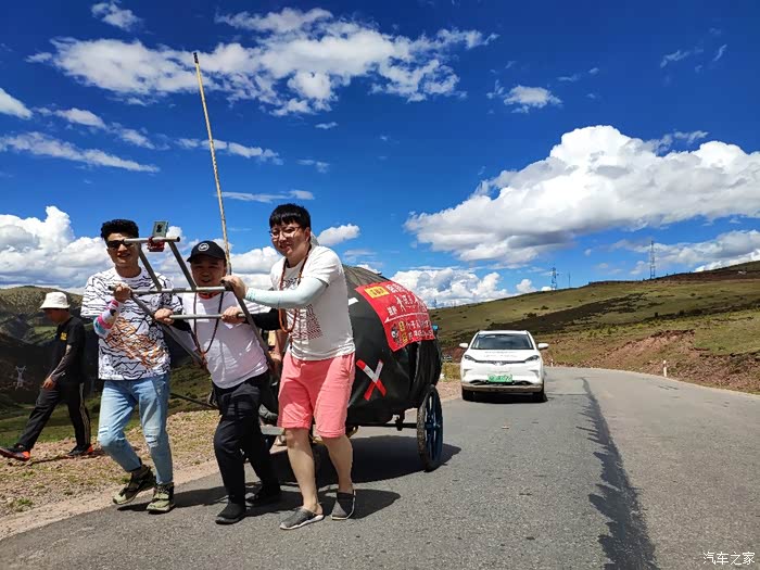 竹子兄弟拉着这样的车,从贵州到西藏,已经走了4个月,一边直播一边走,我们试了一下,相当的沉……为他们这样低碳的出行点赞!加油,兄弟!