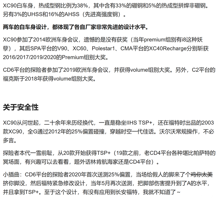 长安福特在宣传中,将探险者的PHS+UHSS+AHSS共计47.8%的高强度钢比例,作为“热成型钢比例”,再四舍五入说成50%。