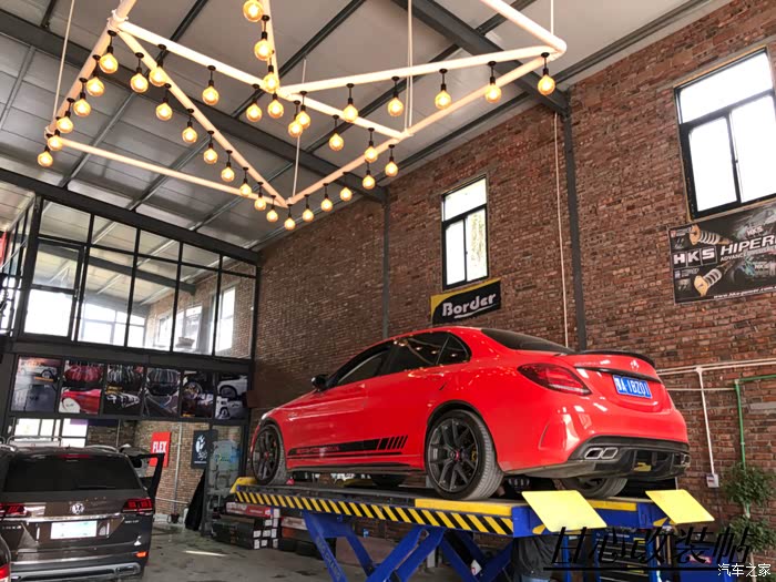 3,车子内部改动:排气(进口repose)——内饰全包围红——方向盘(AMG款)