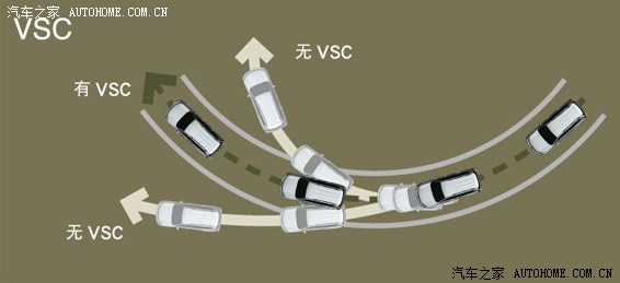车辆稳定控制系统VSC作为车辆的辅助控制系统,它可以对因猛打方向盘或者路面湿滑而引起的侧滑现象进行控制。当传感器检测出车辆侧滑时,系统能自动对各车轮的制动以及发动机动力进行控制。