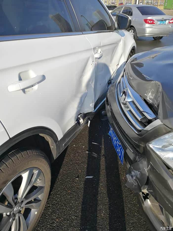 我是新手嘛,胆子大就敢上路各种开了,他一直说我开车不认真,说我转弯时不注意多看看,说我太快太自信,我不理他就开我的。14日早晨上班,我正常开车上班,从东沽进隧道,从于家堡口出来左拐绿灯过来,之后是一条长长的左拐待转区,前面有红灯,是给直行的车看的,我车右面停着一辆出租等灯,我跟着前车过去,突然右侧被撞,右车顶气囊弹出,副驾驶右侧气囊弹出,后排右侧安全带锁的死死的,车里飞出一些不明颗粒,有点刺鼻的味道,驾驶座上麦克风说话了,一个女声问我人有没有受伤,我已经懵了,简单说了一句没事,也没管她再说什么,熄了火就下车了。被撞的一下,我想到老公做的那个梦,真TM准,想我的爱车会不会就废了啊,我还得买车,想这车会不会要爆炸啊,愤怒带着惊吓着下了车。