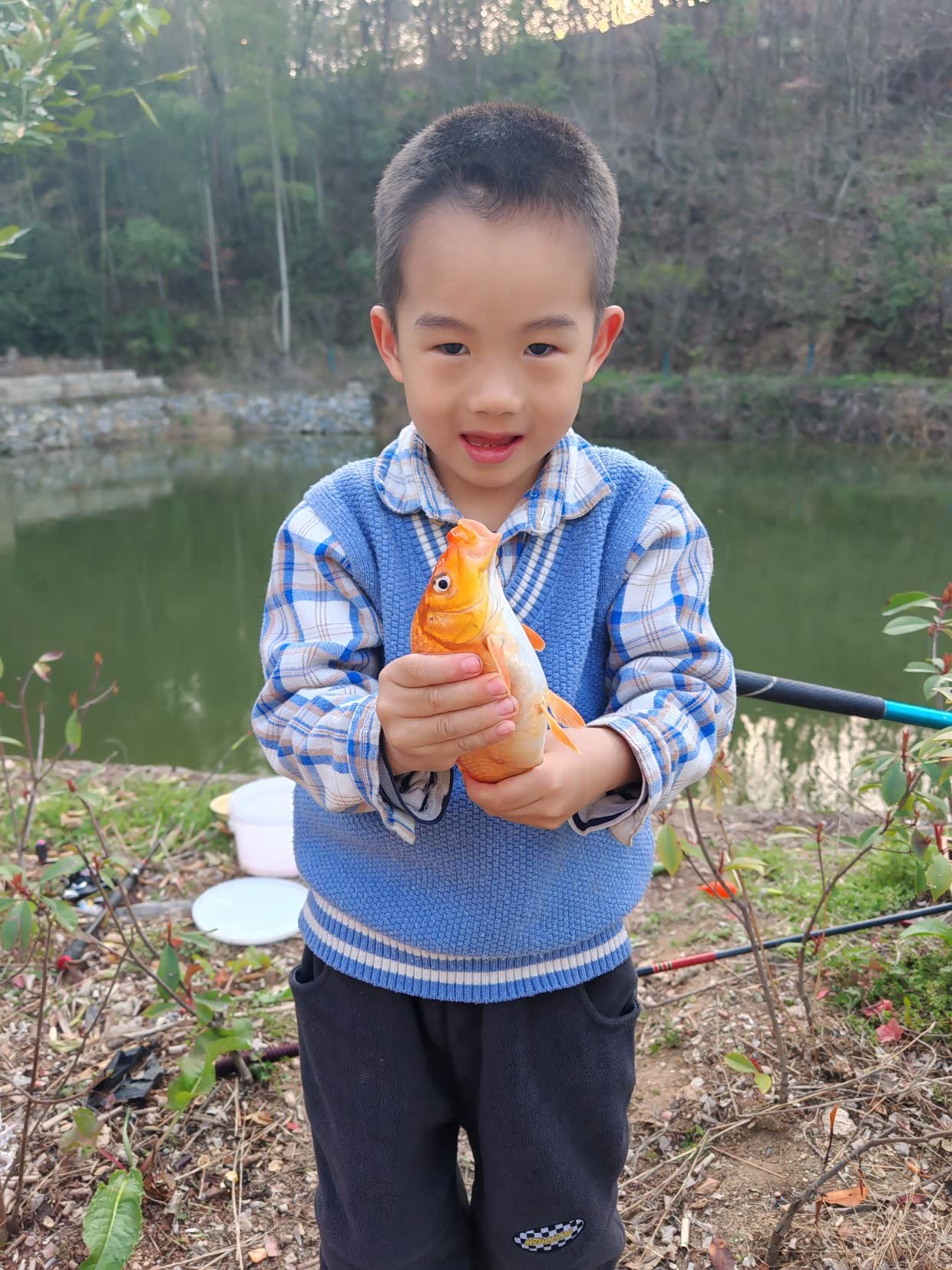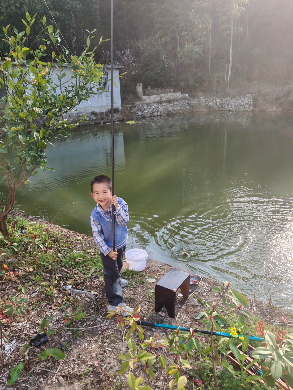 过完生日,表侄子非要我带他钓鱼,我就带他在门口的鱼塘里甩两杆,钓到了几条鱼,开心的不得了