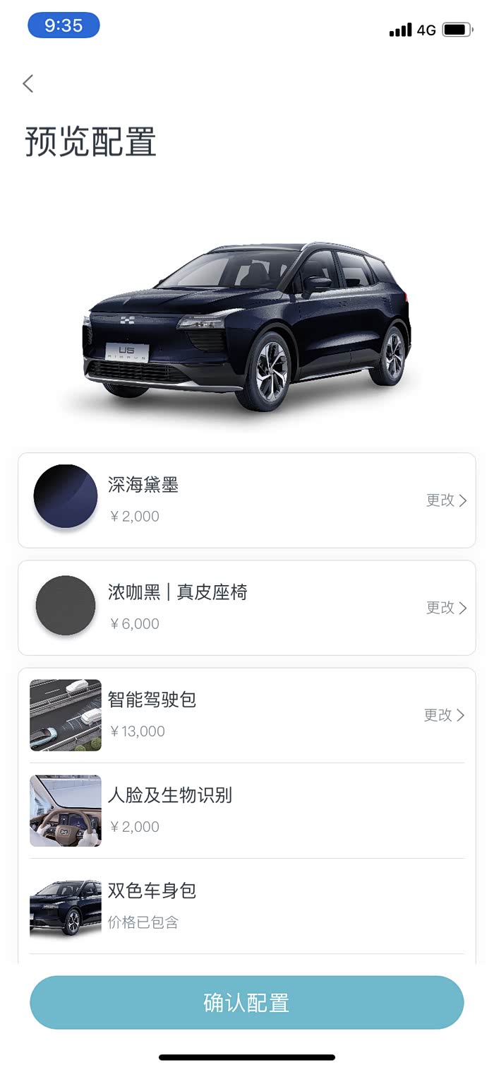 目前还在考虑中,需要和家里人再商量一下,再下订单,还有值得一提是,爱驰都是在网上选择配置的,不再像四儿子店那么多的套路,所有的资金都是体现在车身的配置和用功上。