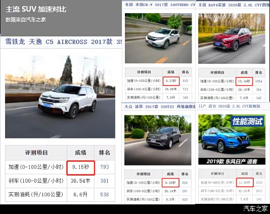 2、1.6T + 6AT动力足够用,虽然我不开快车,但在20万级别SUV里,加速可以排前三(下附对比图)