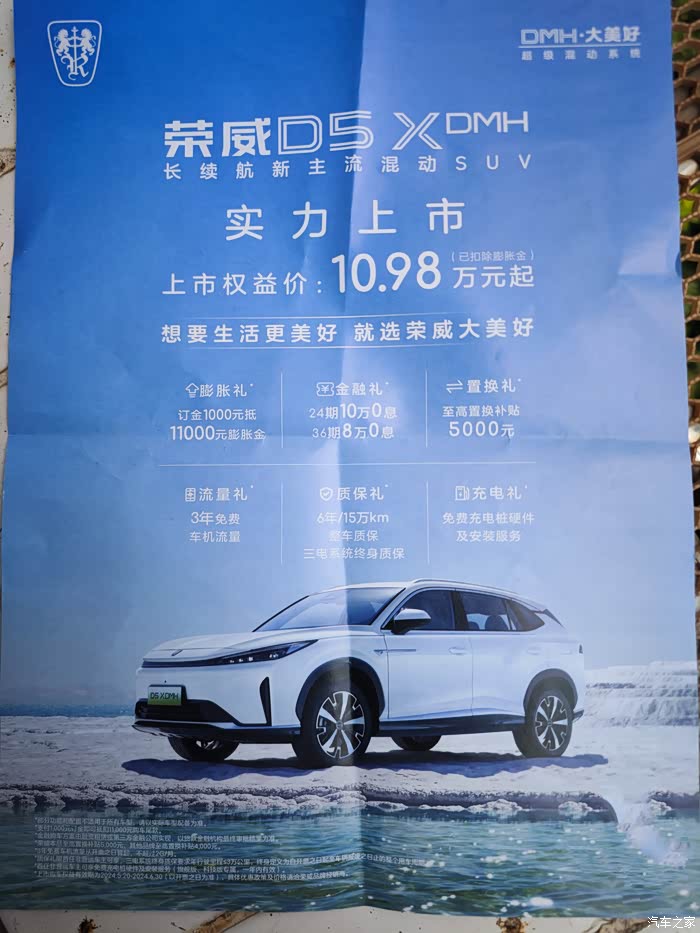 说说今天我们到店看的这台荣威D5X DMH,官方指导价11.98~14.68万元,但目前有上市权益价膨胀礼,订金1000元即可抵11000元的膨胀金,相当于全系车型都降了1万元,10.98万元~13.68万元就能买了,