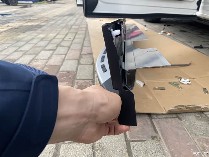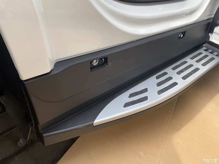 脚踏板发烧友,提车第一天就迫不及待去装脚踏板了,还不错。原厂刻模,非常结实。老人小孩儿上车无压力