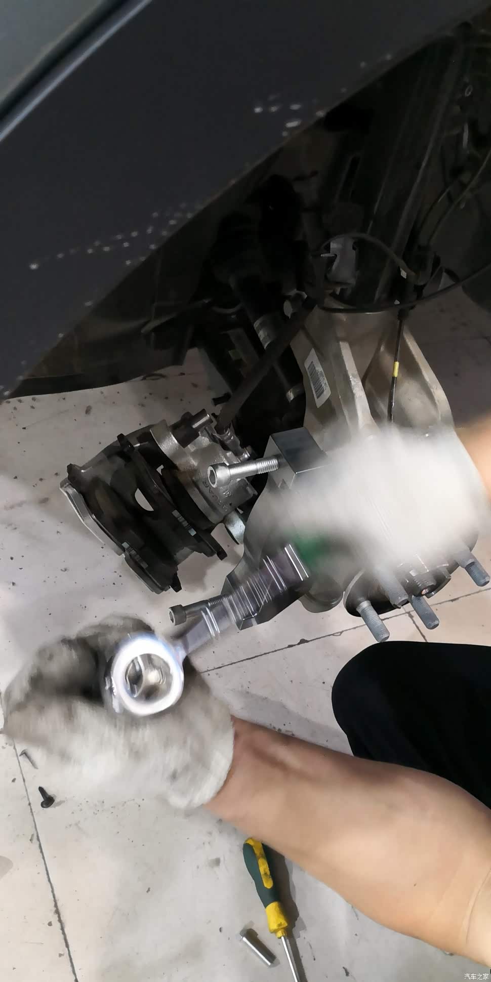 轮毂安装中,和原车对比,效果提升还是很明显的,主要斯科舍灰配深色的轮毂比较好看,换完轮胎后,车身升高了大概1厘米,最后我还拆掉了一个不实用,不好看,还降低车身高度的小东西,卖个关子,最后说。