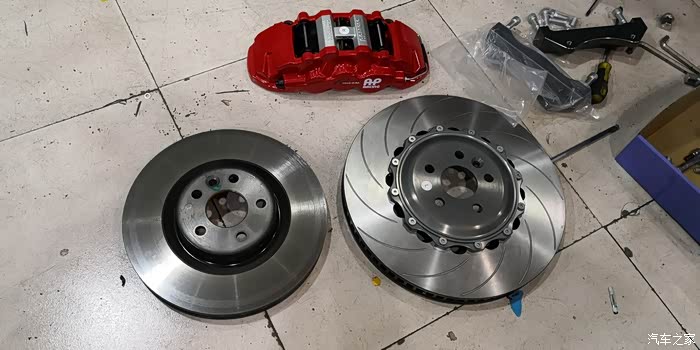 好友老板一路搞搞搞,很累人,我在这里再次感谢。图片可以看到原厂前碟和390碟的大小对比,各种干干干之后终于安装成功。