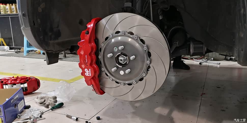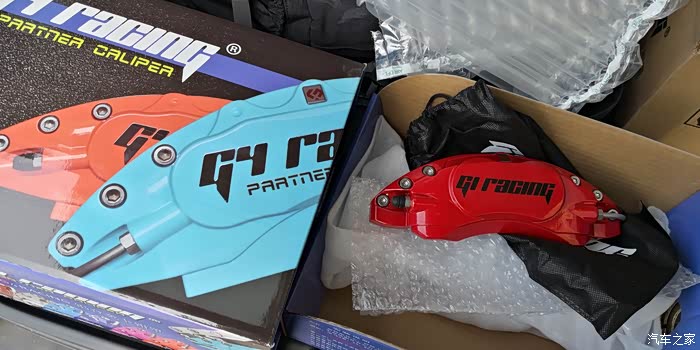 在等待轮毂的日子里,老板下订了刹车套装,前面不说,先说说后轮,因为目前发神没有能适配的改装后卡钳,主要是电子手刹就没有了,所以只好只更换后350刹车碟,然后在某宝买了卡钳罩子,这个罩子是螺丝固定铝合金材质专车专用的,做工和质感都非常好,价格也非常好