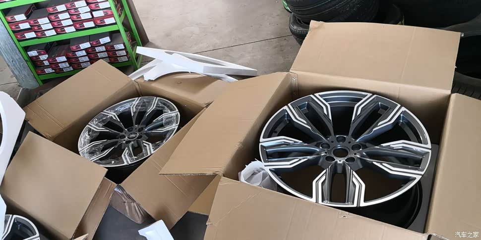 用老板的渠道(某卡)订制了20寸锻造轮毂,锻造的好处除了重量和强度,主要是有图就能做,原车PCD,找了一些图样,最后在宝马750原装轮毂的基础上做了一些修改,然后下单,开始漫长的等待,正常半个月就能收到货,但是这个月份是骚躁的季节,广大车主都在订制,所以本人整整等了一个多月才到货,收购我原车轮毂轮胎的兄弟,同样等到欲哭无泪,昨天才给这位兄弟某邦发货走。