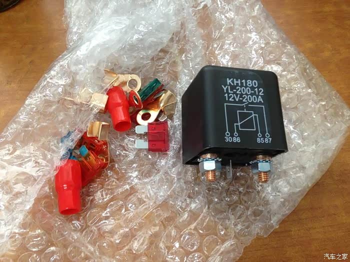 所以决定用12V电,我只需要采购A:12V200A的大功率汽车继电器,确保只在发动机工作的使用用电。B:3相4线插头插座,确保接触良好放回家里也不会误插交流电。C:12V的车载烧水壶和12V电压力锅,最多250W的功率不会损伤车辆,对电线要求也低。