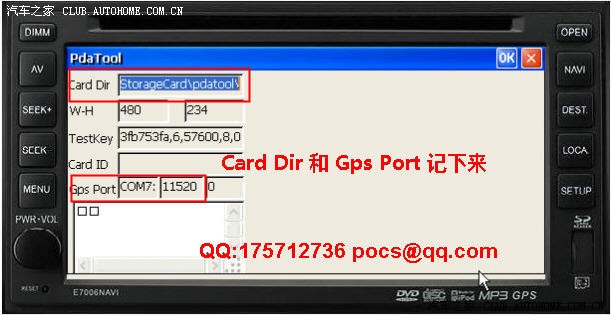 上边有GPS的端口号、速率、屏幕的分辨率以及SD卡名等信息。这台机器就是老款致胜DVD分辨率480*234,这种屏幕只能使用KLD的模拟3D导航,用不了实景的3D导航。