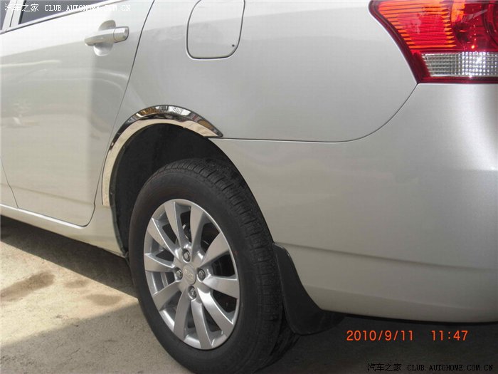 加装有轮眉,有人说加这玩意不好,与车身接触的地方容易生铁、腐烂,时间长了有可能,不过新装时还是挺漂亮的,也能防擦碰的。