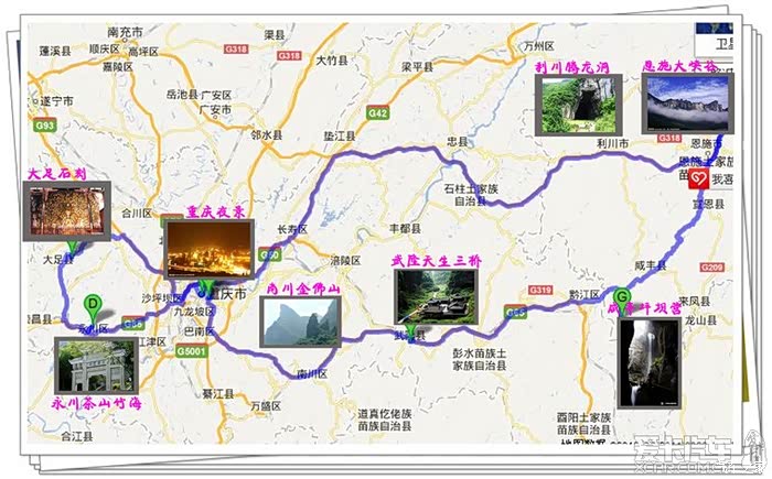 重庆,从来没有去过,只是听说过很多,重庆菜、火锅,赫赫有名。这段时间重庆下暴雨,我们去的位置好像还被淹过,我们弄的挺紧张的,好不容易远行一次,可千万别碰上坏运气。去重庆,要经过齐岳山,这里的气温比较凉快,然后海拔也比较高,然后就基本是走下坡路,一进重庆,车速马上就可以提起来,比在湖北境内恩施段好走多了。我们一路欢歌笑语。