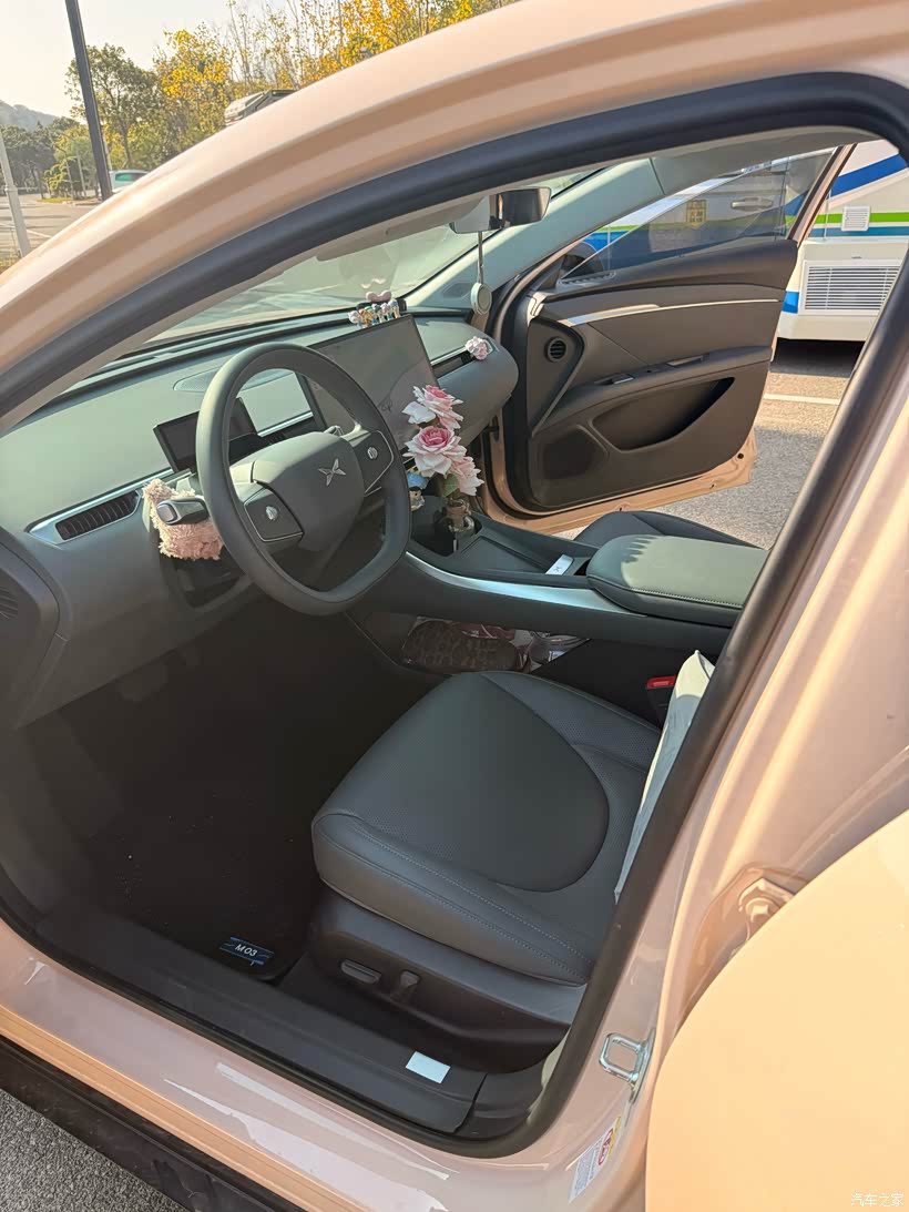 颜值也长在我的审美上,车身线条流畅,简约又时尚。我选的是星瀚米配色,停在小区里辨识度很高。内饰是简约风格,软质材料包裹,摸起来很舒服,没有廉价感,日常看着就心情好。