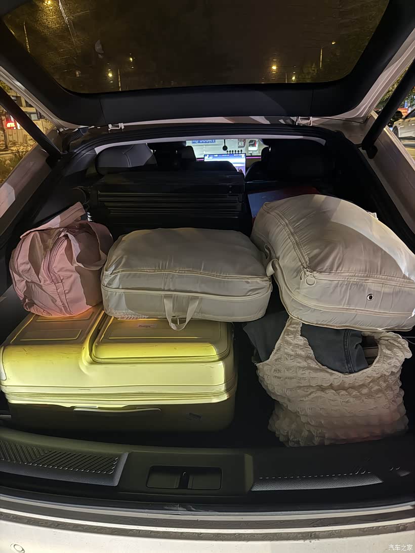 别看MONA M03是紧凑型车,空间一点都不挤。我身高177cm,前排调好座椅,头部还有一拳多的空间;后排坐两个成年人,腿部也有一拳的空间,日常带家人、朋友出行完全够用。后备箱能放下两个20寸行李箱,再加上一些零食、背包,周末出游的行李轻松装下。