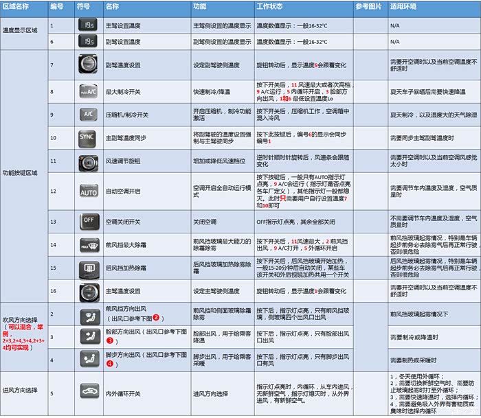 自动空调按键简介