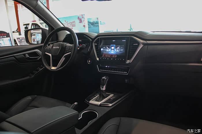 内饰方面,D-MAX也加入了更多能体现豪华感的设计以及用料。在中控台的上方覆盖了大量的软质材料包裹,并加以缝线效果处理。与此同时,在皮卡车型中出现频率较高的塑料方向盘,在D-MAX上也被加上了皮质材料并支持四向调节。