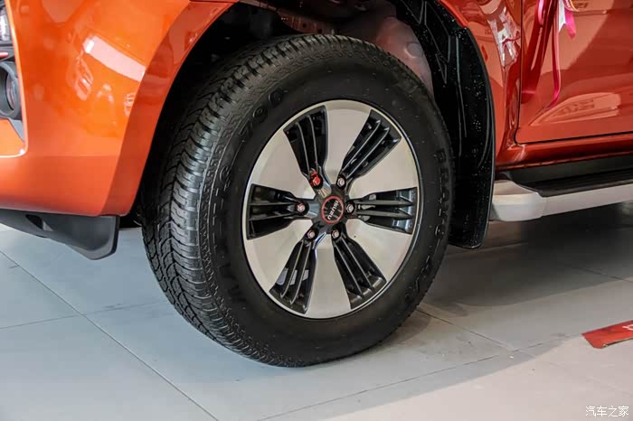 采用的是18英寸的多条辐式铝合金轮圈,相比老款车型的造型更好看。轮胎尺寸为265/60 R18,相较于同级别的皮卡来说,这样的轮胎宽度能保障日常驾驶的稳定性。