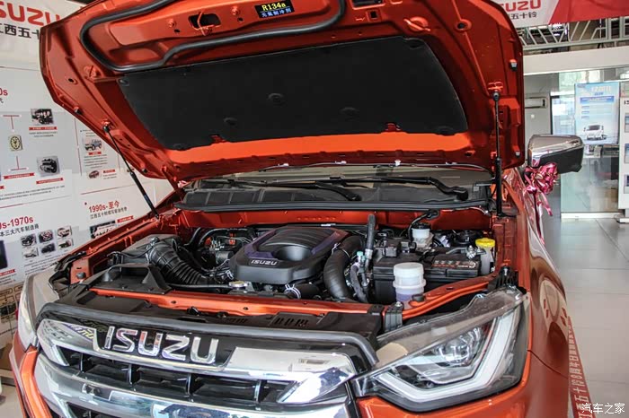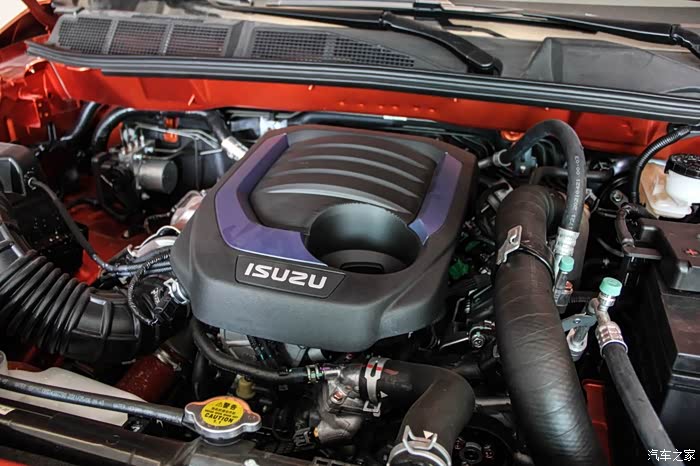 D-MAX依然沿用劲蓝动力RZ4E 1.9T四缸柴油发动机,最大功率120kW,峰值扭矩360N·m,不过针对进气设计、降噪处理和节油等做了一定的优化。由于五十铃在柴油发动机的造诣颇高,这台发动机更是同级别中的佼佼者,具备轻量化、小排量、大功率等优势,同时还兼具省油、耐久、静音等特点。