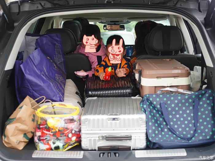 当时买车的时候就想着既能带上一家人出门,不用坐满人的时候放倒第三排当个大四座开车。这下这车的优势就来了,放倒第三排,行李全放下,两个小孩坐后排,谁也不打扰谁,坐着舒服,也锻炼他们独立自主的能力。