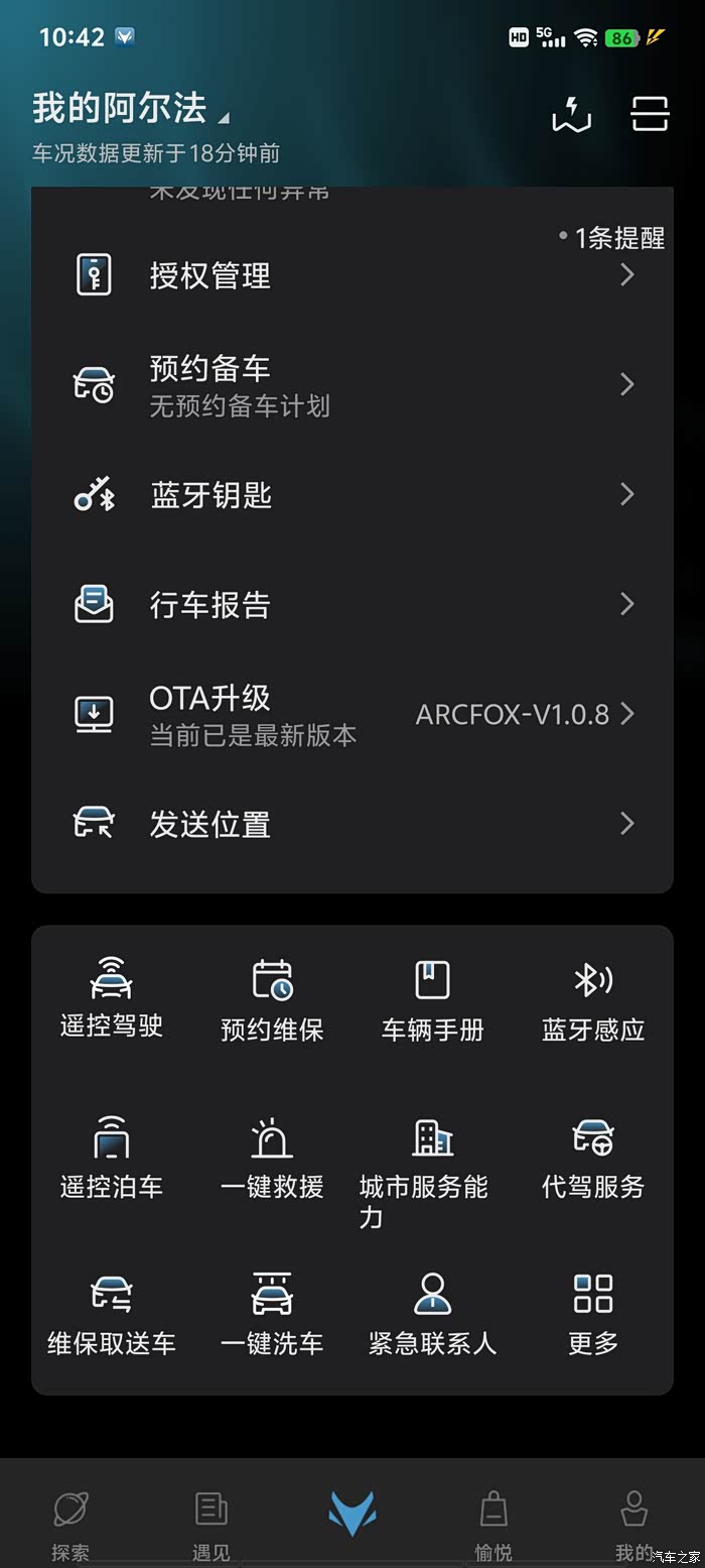 10、APP操控,电车现在都有,就是大屏幕里多了个移动卡,买车送三年流量,极狐商城上有时候做活动6折一年合100多也花不了多少钱。夏天或者冬天远程打开空调、座椅加热真的少受很多罪,外界30多度的时候,车里能晒到六七十都度,虽然没有座椅通风,我觉得也没啥用,可以远程开空调降温,座椅一直通风,也会把中老年男人的腰给吹着吧。