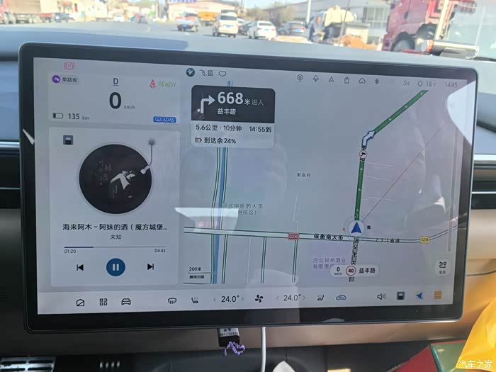 8、15.6英寸的中控屏幕,哈曼的,屏幕界前三,这个是最合适的大屏尺寸了,分辨率很清晰。黄金比例,后排看网易云音乐的歌词也很high。
