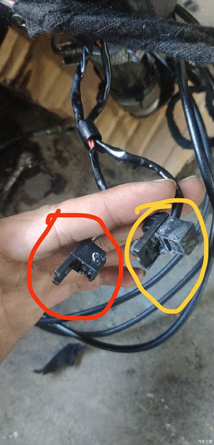 我估计这个图懂得人一眼就能看出弊端。。。红圈内的传感器原本是配合黄圈上面的底座一并装在上面位置的。现在却单独固定在侧面位置。黄圈内的传感器原本是长方形带有螺丝孔的,装在侧面位置。现在被割断螺丝孔位用胶水粘在底座上固定在上方支架上。。。。