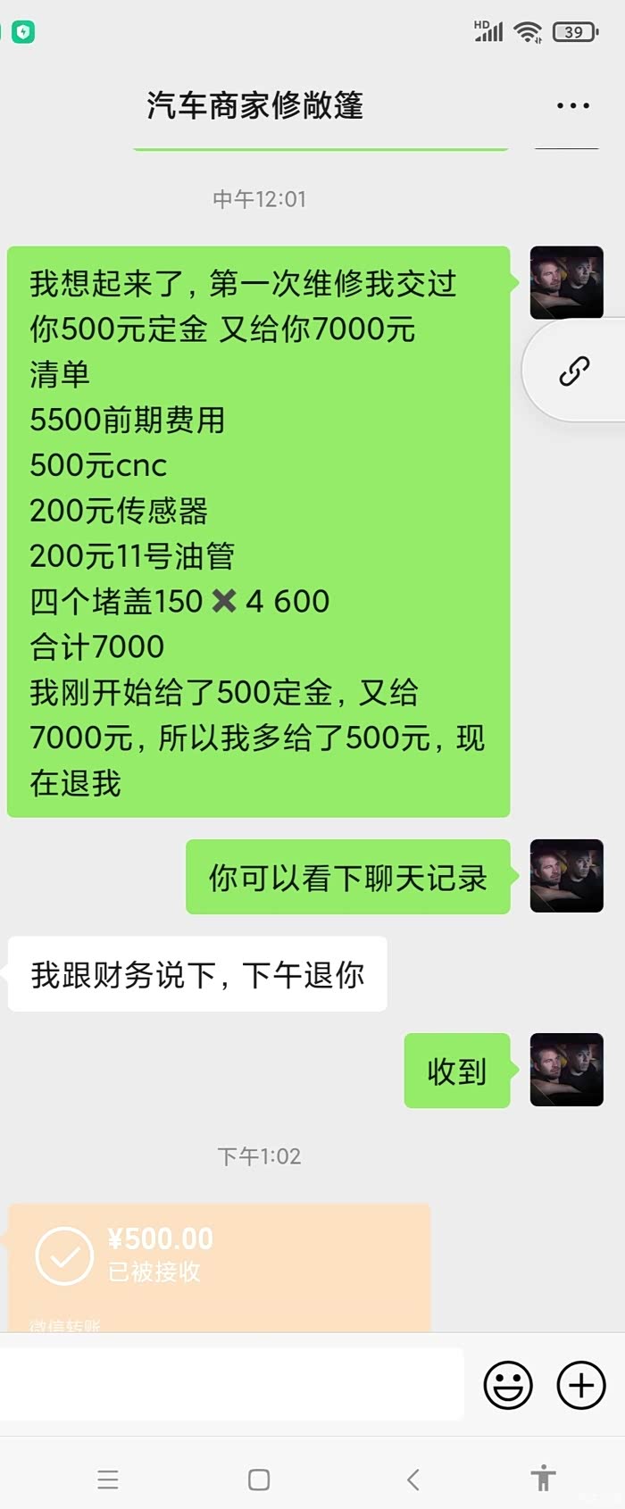 价钱谈拢了我准备走某鱼平台,商家说怕我套路他,所以微信支付。当时付款500元定金,剩5000尾款