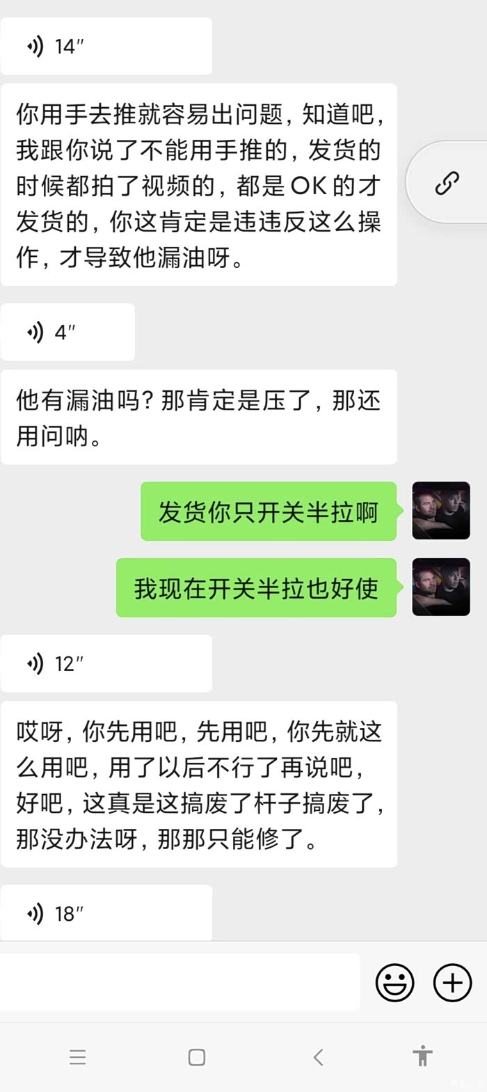 又和我说我手推坏的,但是之前他告诉过我,手推需要泄压,我都是按照流程做的,没有强行推。