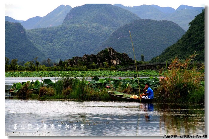 来到普者黑,映入眼帘的是旖旎的山水田园风光,蓝天、白云;青山、碧水;绿荷、红花……
