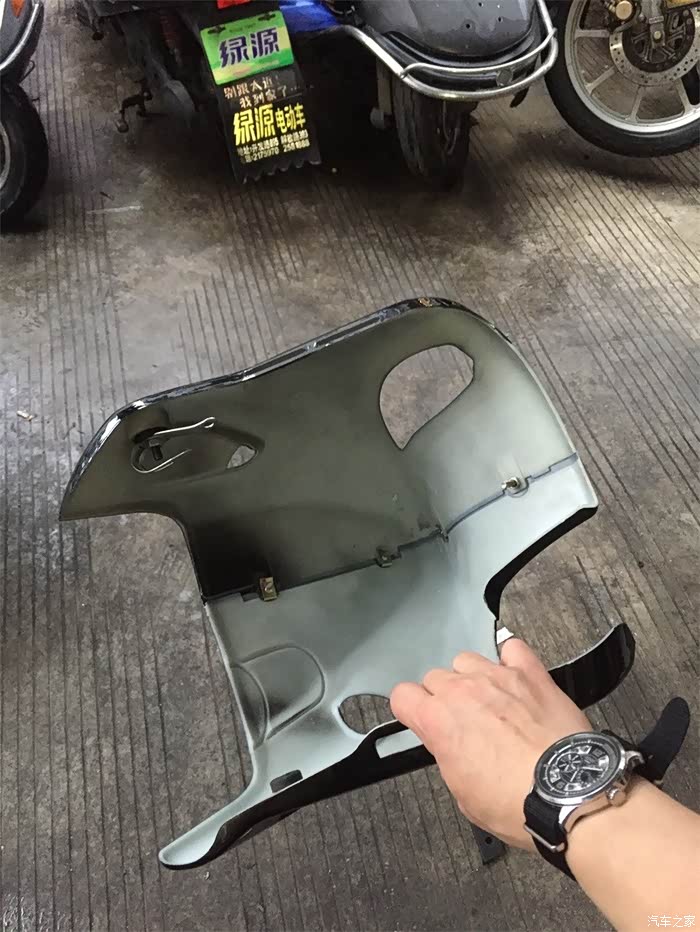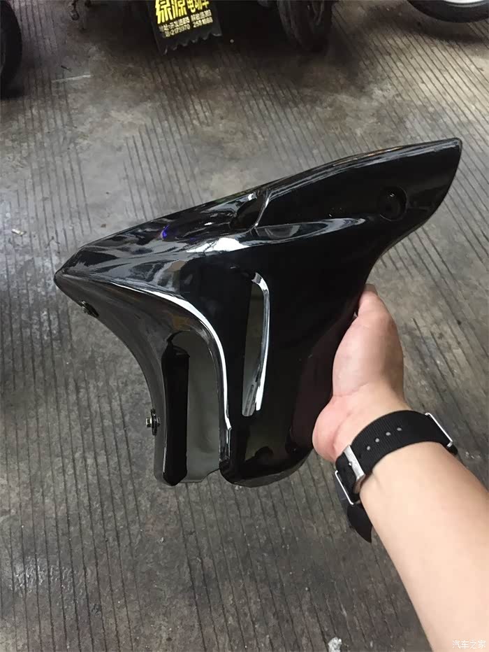 2017.7.5 导流罩完全无需打孔改装,上好支架,提车对比,直接找发动机能够得着的螺丝,直接上!靠近发动机排气接口的位置比较近,可能会高温融化,所以在那个位置,必须切出一个口子。。。
