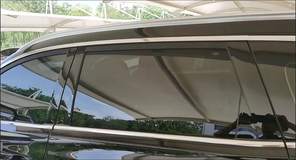 撕开背胶对准车窗边缘慢慢贴合,边贴边用手按压紧实,边角处多按几十秒,确保每个位置都贴稳,贴完再整体顺一遍。