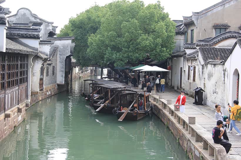 到东栅游客中心,我们凭身份证换好门票后顺利入园。景区的游览路线与一条小河并行,河岸两侧尽是水乡特色建筑,大多是一面邻水、一面临街的民居。街道狭窄,我们沿着青石板路缓步前行,细细欣赏两旁的明清古建筑,木窗黛瓦间满是岁月的韵味。每隔不远,就有一条幽深小巷通向河边,河面上乌篷船摇着橹缓缓划过,船桨搅碎水面的倒影,泛起阵阵涟漪。街道另一侧,除了沿街的小商铺,还散落着不少古朴院落,其中就有著名作家茅盾的故居,静静诉说着水乡的人文底蕴。东栅完整保留了原始水乡风貌,生活气息格外浓厚,原住民依旧在此生活劳作,让整个景区更显鲜活。因面积较小,我们游览了约两小时便结束了行程,随后驾车前往西栅。