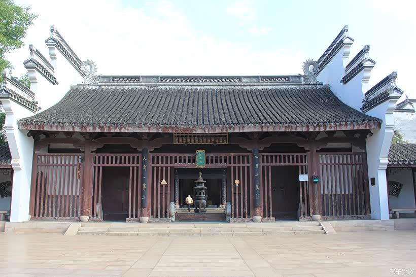“修真观”。百度:北宋咸平元年(998年),道士张洞明在此结庐,修真得道,创建“修真观”。与苏州玄妙观、濮院翔云观并称江南三大道观,地位极为崇高。修真观共设三进,一进为山门,二进是东岳大殿,三进为玉皇阁;两边分设十殿阎王、瘟元帅、财神等配殿;山门前广场开阔宏畅。山门正上方挂有一特大算盘,下方书对联一副:“人有千算,天则一算”,极具警世意味。