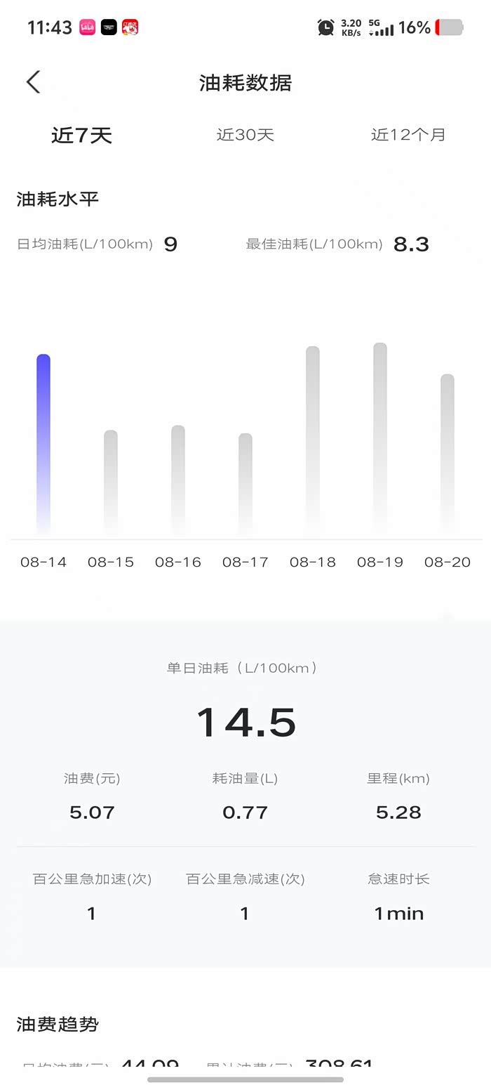 12月3号提的车,目前5000公里不到,综合油耗10.3