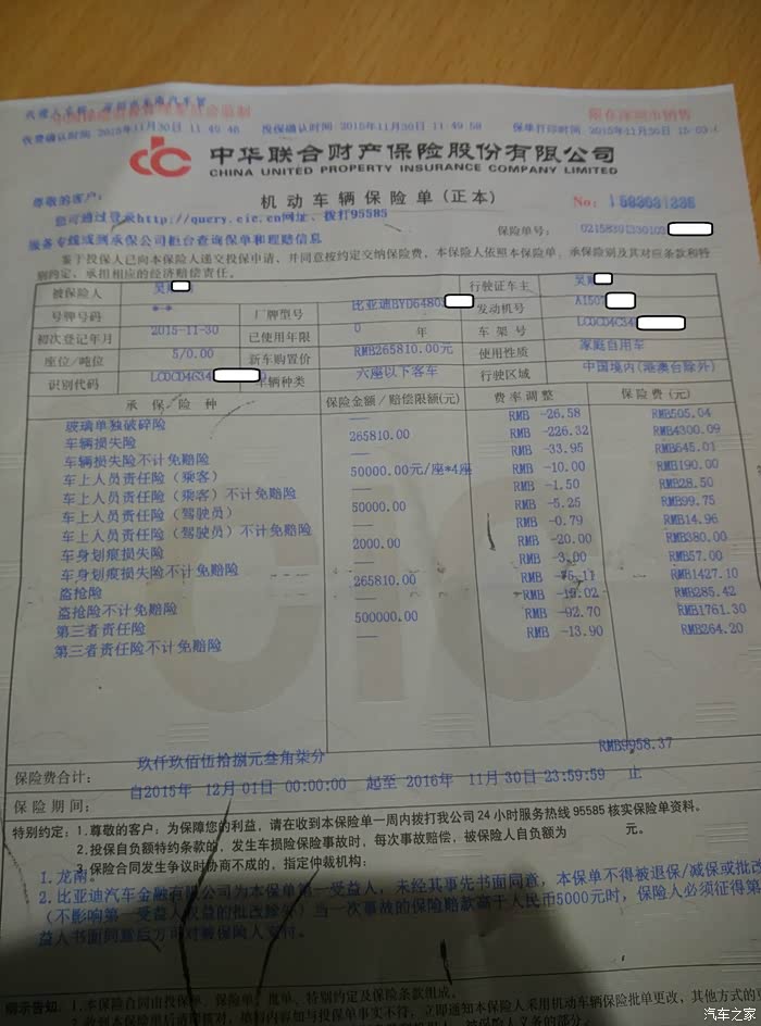 附上购车保险及发票认证!