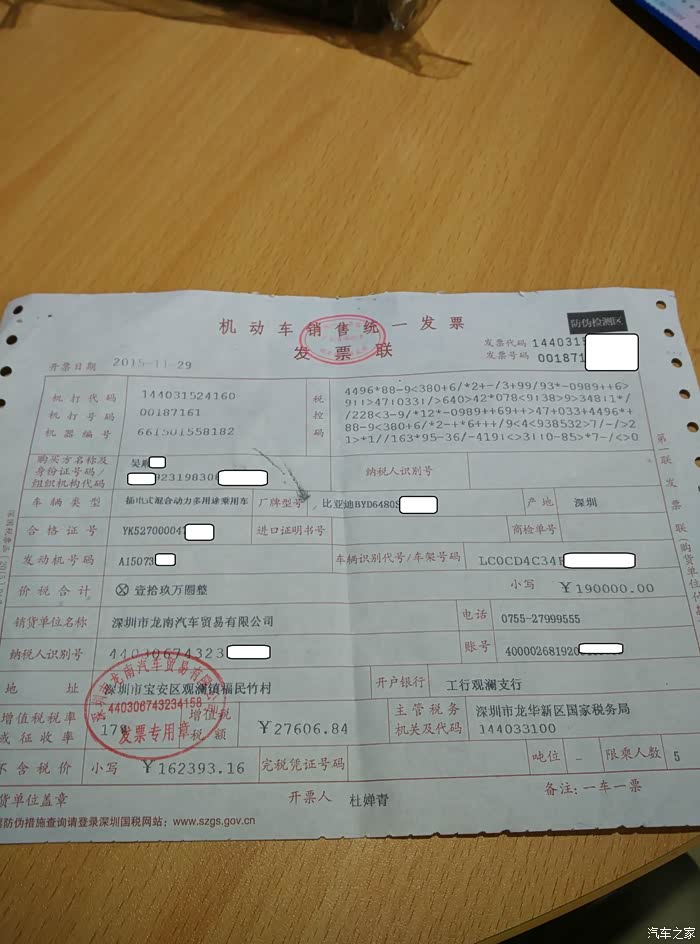 出差一直到11月20多号,接到4S点销售的电话,有一批唐月底会送深圳,于是我第二天买好机票,直接飞回深圳!到深圳后就跟销售通电话,销售说就这几天,具体时间待确定从工厂发车后,会第一时间通知我选车,我是24日回深圳的,直到26日晚上十点,销售发微信给我明天过去提车。