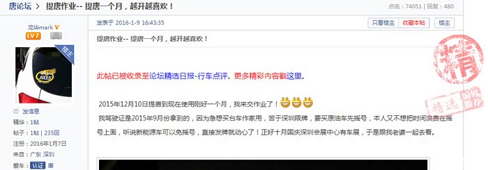 想不到自己第一次在汽车之家发表就入选汽车之家论坛精选日报,看来只要用心,都会得到大伙的赞许,心里很开心!