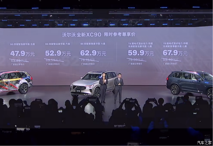 新款XC90有B5、B6的48V轻混,还有T8插电混动好几种选择。我试驾的是B6车型,2.0T双增压发动机加上48V轻混,在城里开起来很轻快。起步的时候一点都不肉,堵车跟车的时候,启停特别平顺,没有那种一冲一冲的顿挫感。