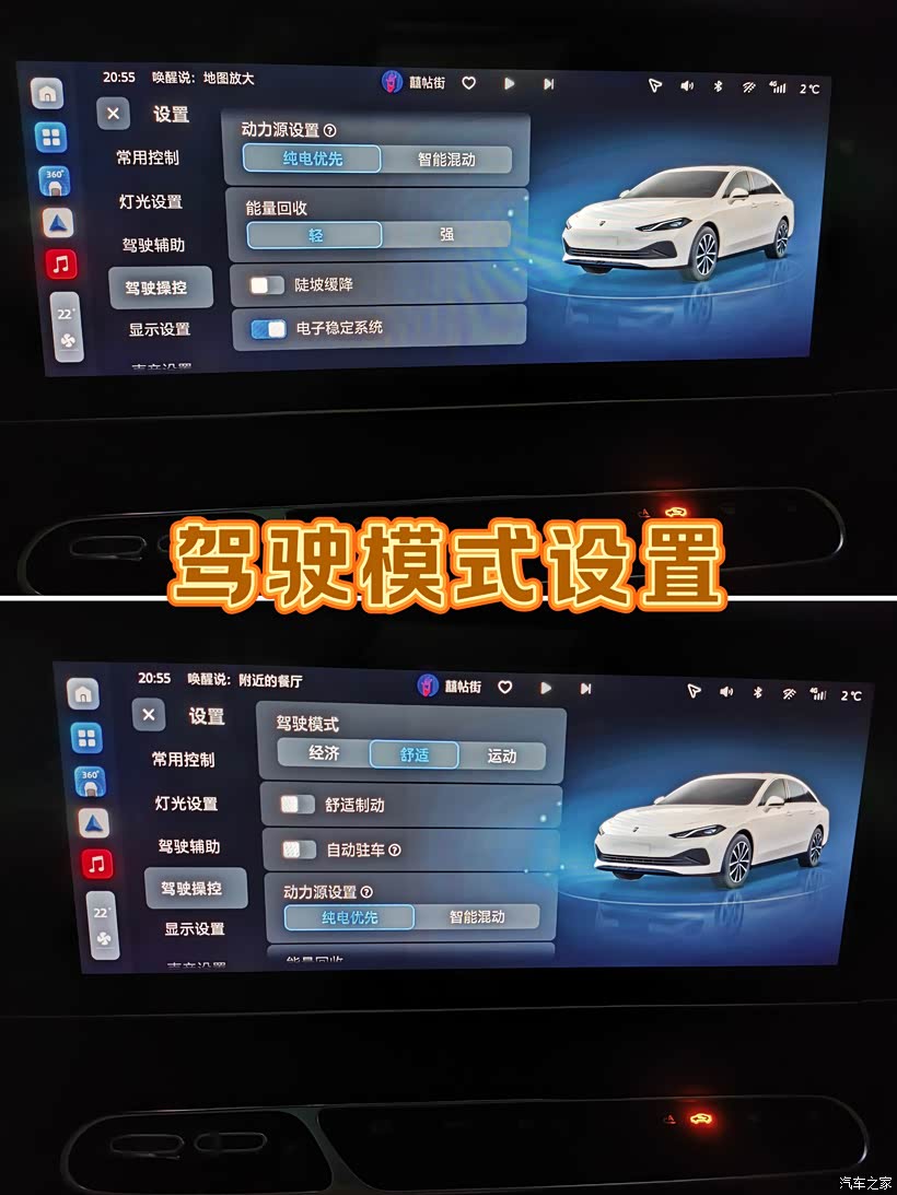 其次,在纯电续航到40Km左右的时候,就可以用智能混动了,直接“你好,斑马”,智能语音无缝切换。这个时候用智能混动,能耗基本还是5.5左右,并且还能反向充电,实测有效。基本等充电充到80km(总纯电里程125km),再切换成纯电驱动,这样感觉能充分发挥燃油的经济效益,发挥燃油的驱动机械能和电能。