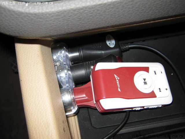 三孔插座,没地方放了,就夹里面吧,依次是导航,电子狗和车载MP3(没啥用)