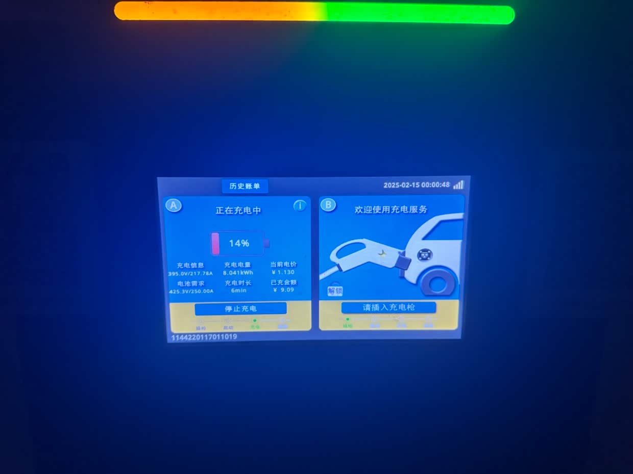 高速服务区补能中。旁边有台特斯拉,跟我的续航差个40公里左右。