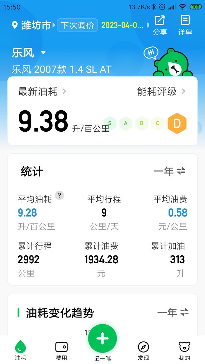 不省油哦,一公里差不多一块了,就单纯下雨天上下班开
