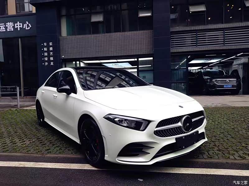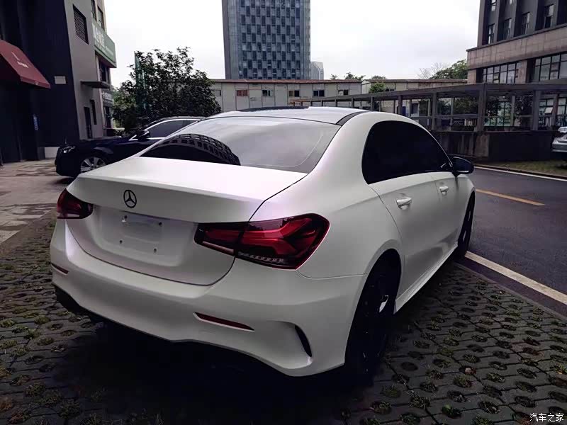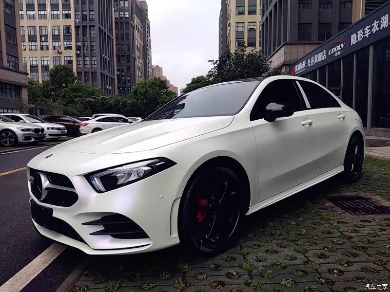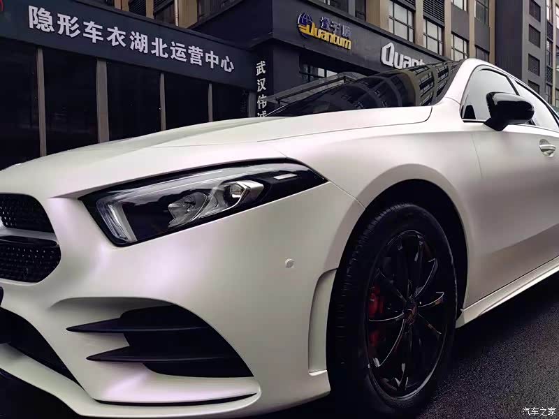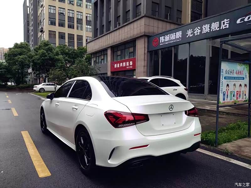 改色完毕后的奔驰A 200 L ,看看这个帅气的外观是不是很喜欢,曙光白色的车膜在阳光的照耀下还会有渐变,别提有多好看了这个车膜。
