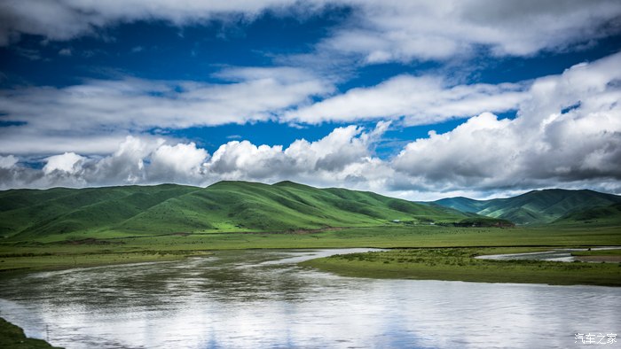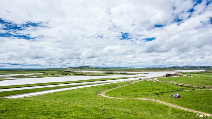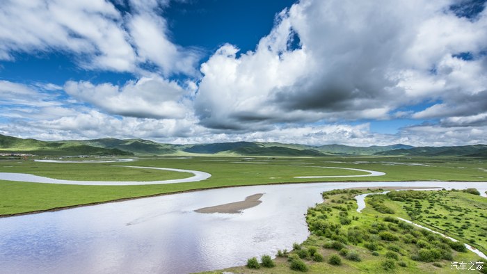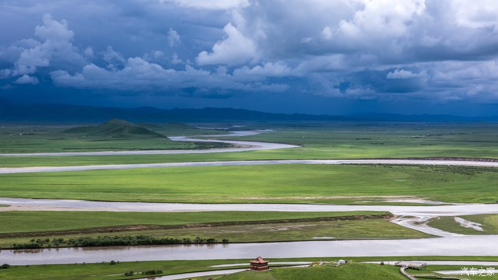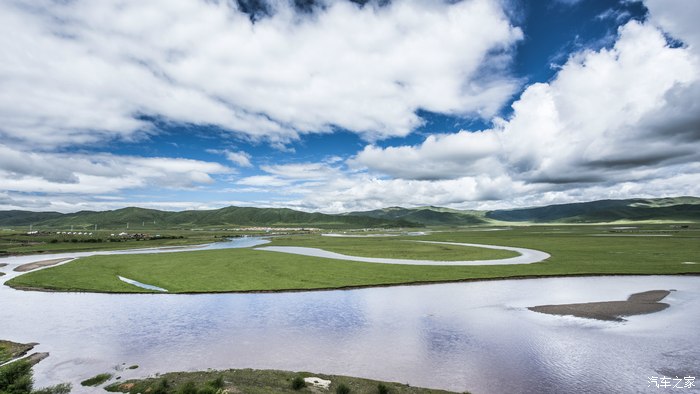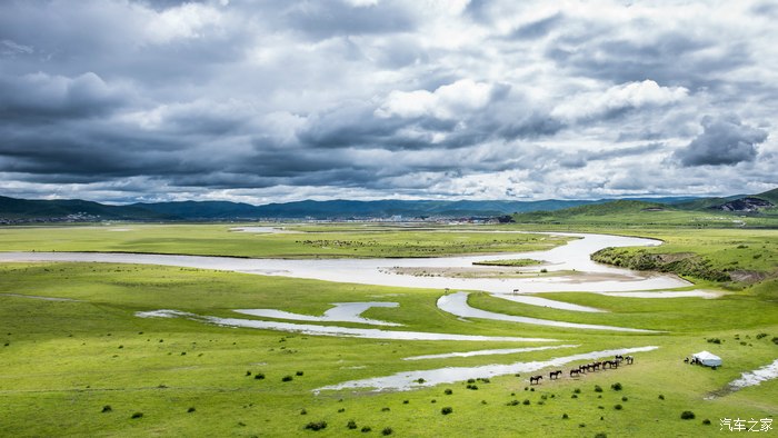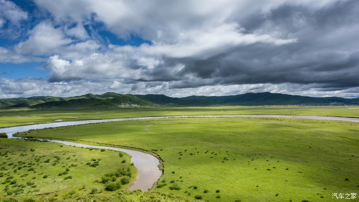 在一望无垠的红原草原上,一道弯弯的河流如同新月般蜿蜒流过,婉约而又明亮,