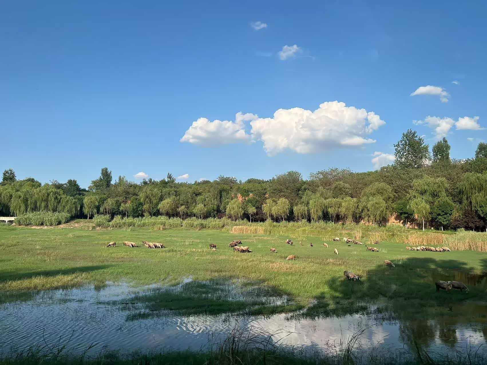 经过一个多小时的长途跋涉终于到了那片魂牵梦绕的草原。瞬间,眼前的景象让人豁然开朗 —— 蓝天白云仿佛触手可及,碧绿的草原像一张无边无际的地毯,一直铺到天边。羊群在草原上悠闲地吃草,像散落的珍珠;骏马在草地上肆意奔跑,扬起阵阵尘土;远处的蒙古包像白色的蘑菇,点缀在绿色的原野上。