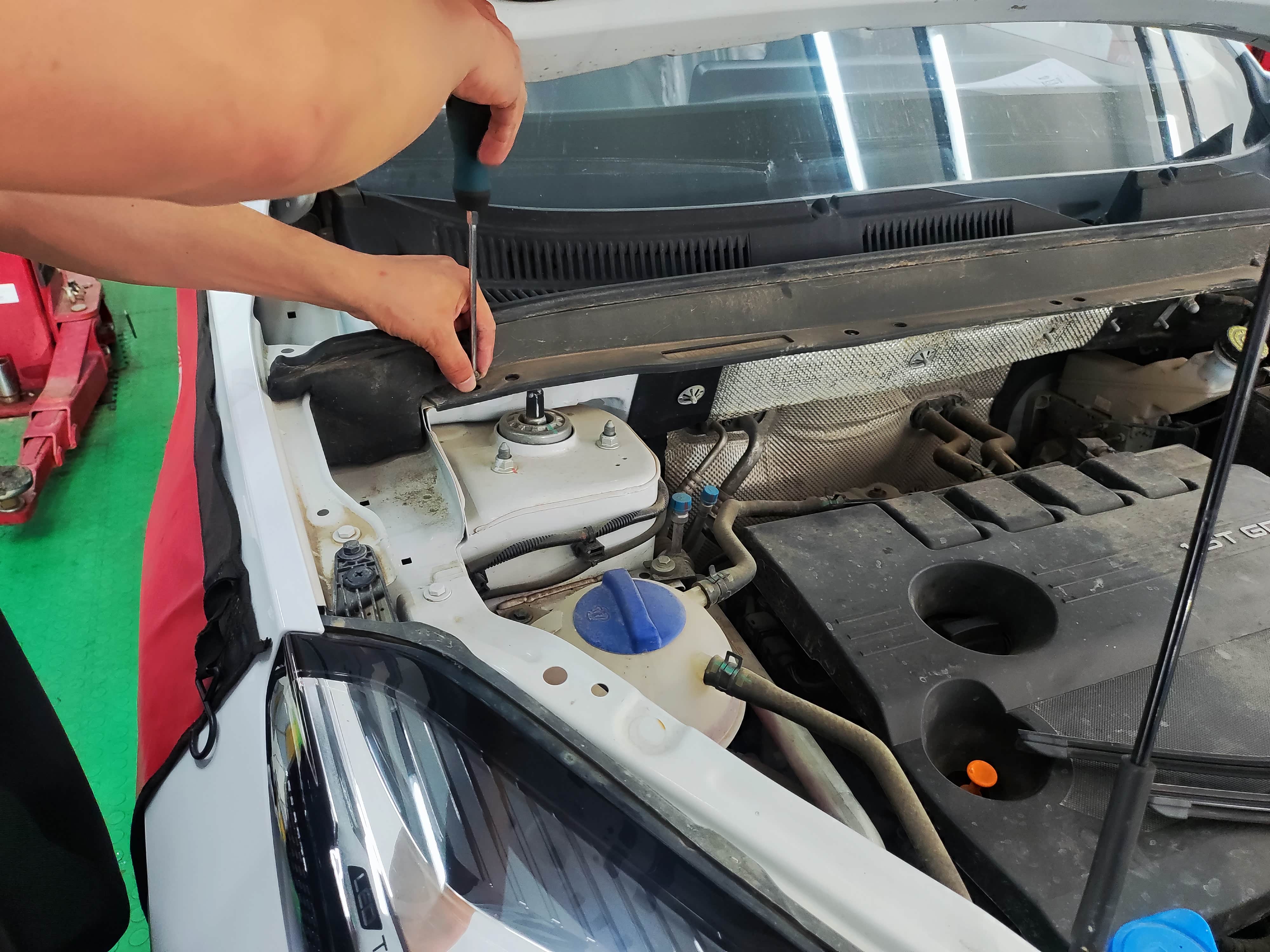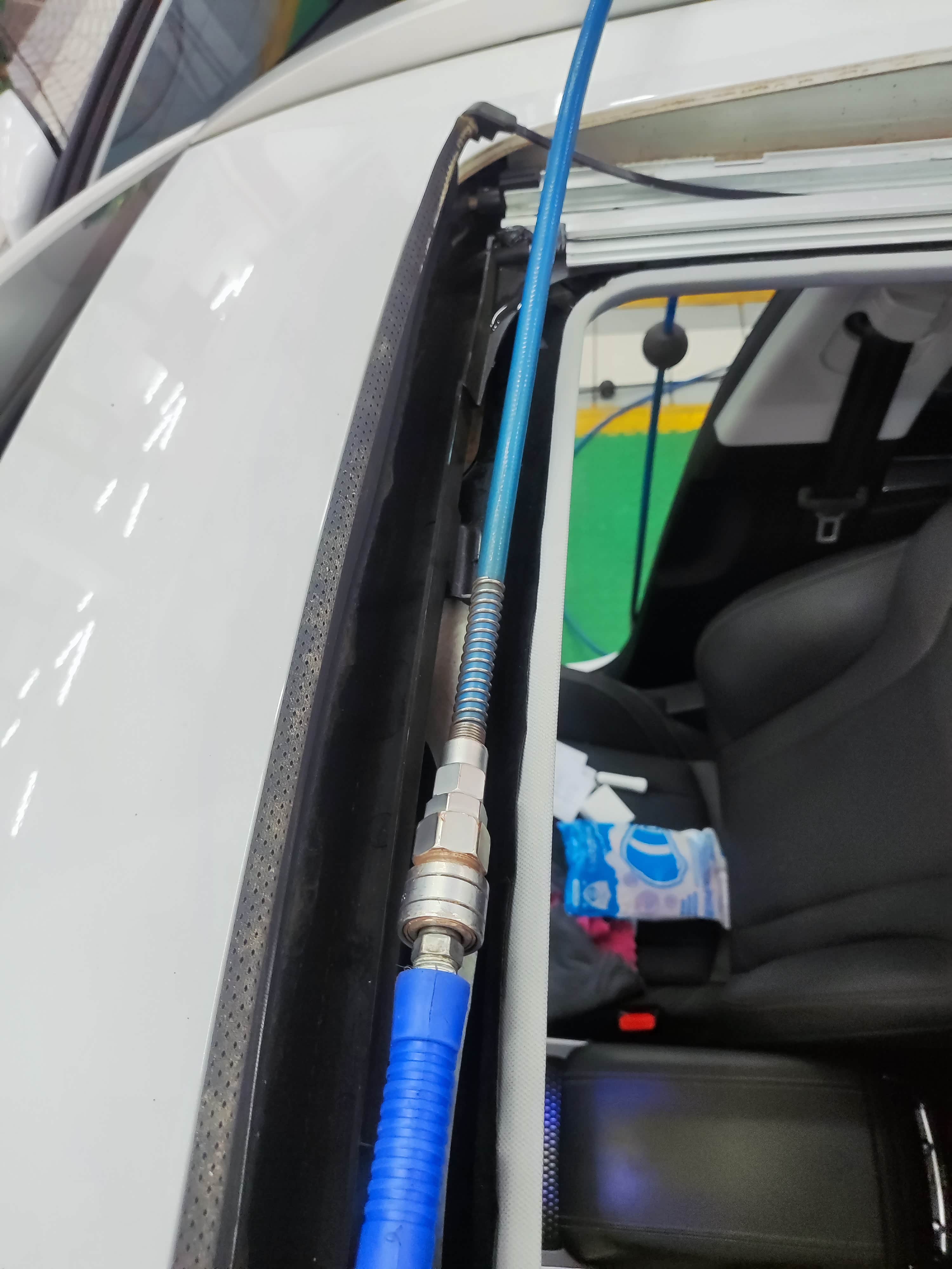 为了彻底解决排水孔堵塞问题,我让售后师傅对天窗排水口的十字口进行了裁剪处理,以扩大排水通道,增强排水能力。对于座椅下潮湿的海绵,采取晾晒的方式进行干燥处理,无需更换零部件。吹了吹排水管。