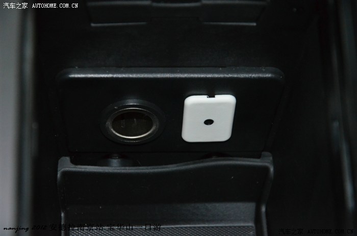 在车内摸索了一会,惊喜的发现,居然有AUX接口,赞!只是需要把播放器放在中央扶手箱内。